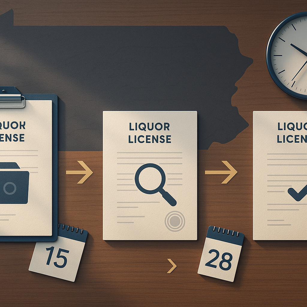 A typical Pennsylvania liquor license transfer takes 8 to 16 weeks after a complete application. Expect diligence and packet prep, municipal posting or hearing if moving premises, PLCB review, and final approval. The biggest variables are document readiness, municipal calendars, inspections, and any issues like tax clearances or liens.